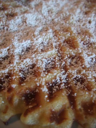 Die Waffeln haben escht die Stimmung gehoben…, auch wenn es „nur“ Puderzucker oben drauf gab. *schleck*